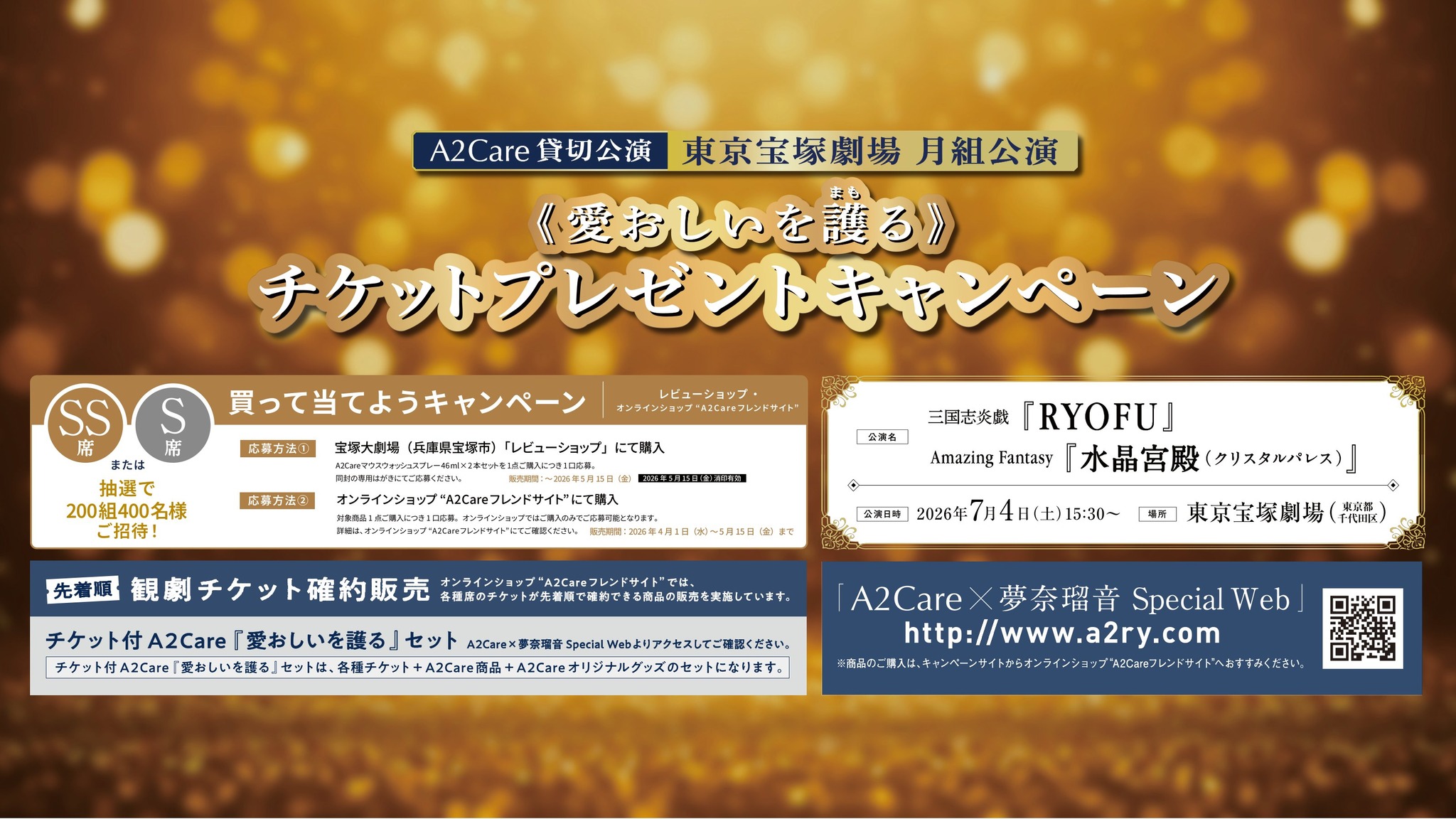 キャンペーンに関するお問い合わせ:A2Care 宝塚劇場 月組 貸切公演《愛おしいを護る》キャンペーン事務局