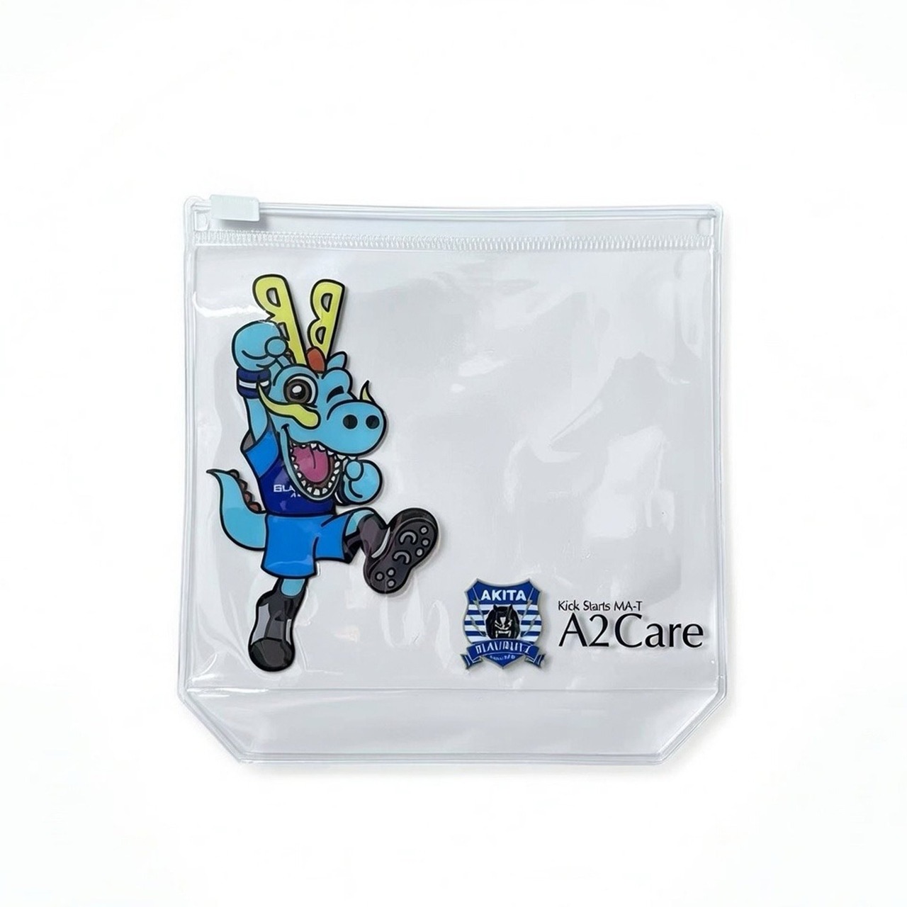 ブラウブリッツ秋田マスコットであるブラウゴンをデザインしたA2Careオリジナルのクリアポーチとなっています。