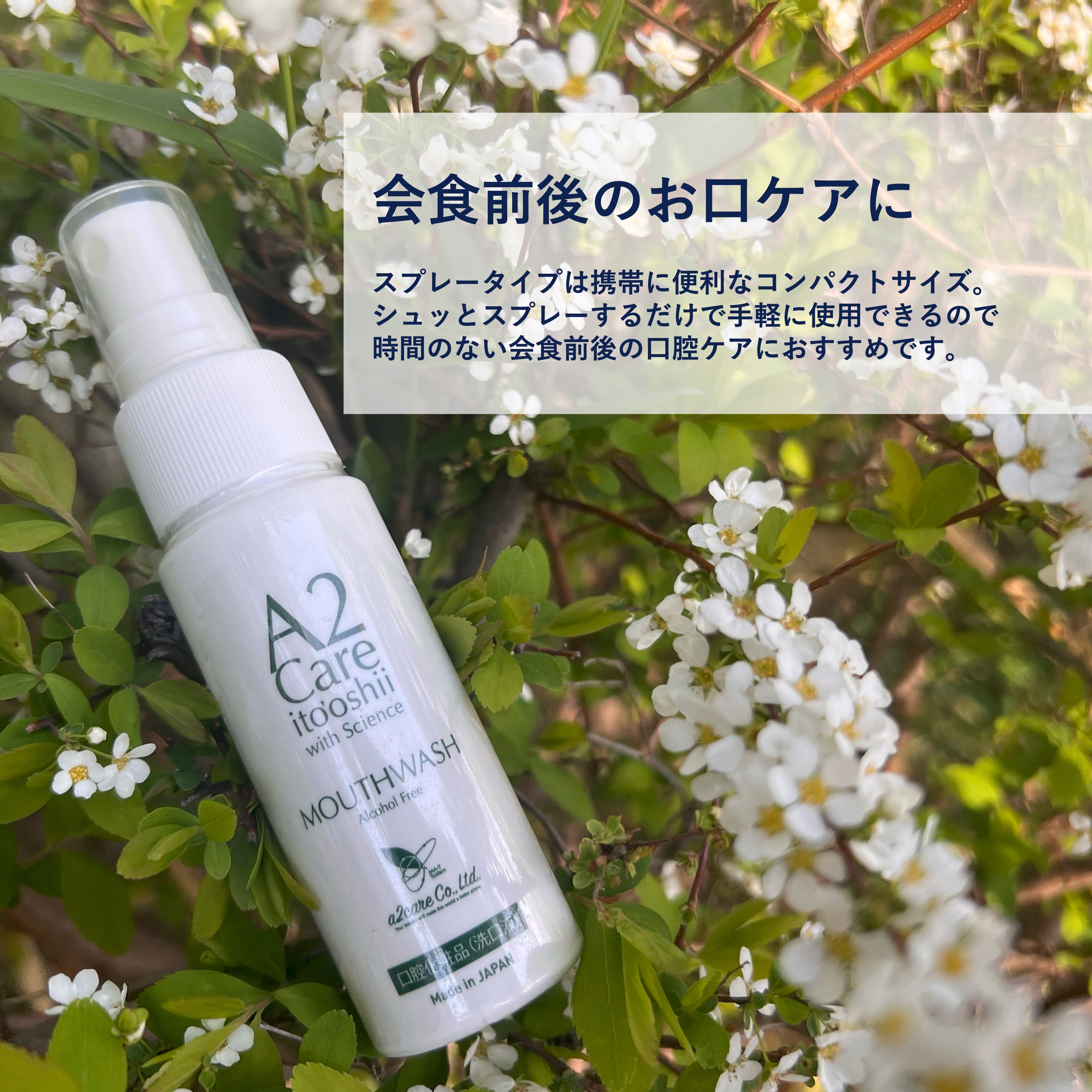 A2Careマウスウォッシュを使用することによって口腔内を浄化し、口臭を防ぎます。