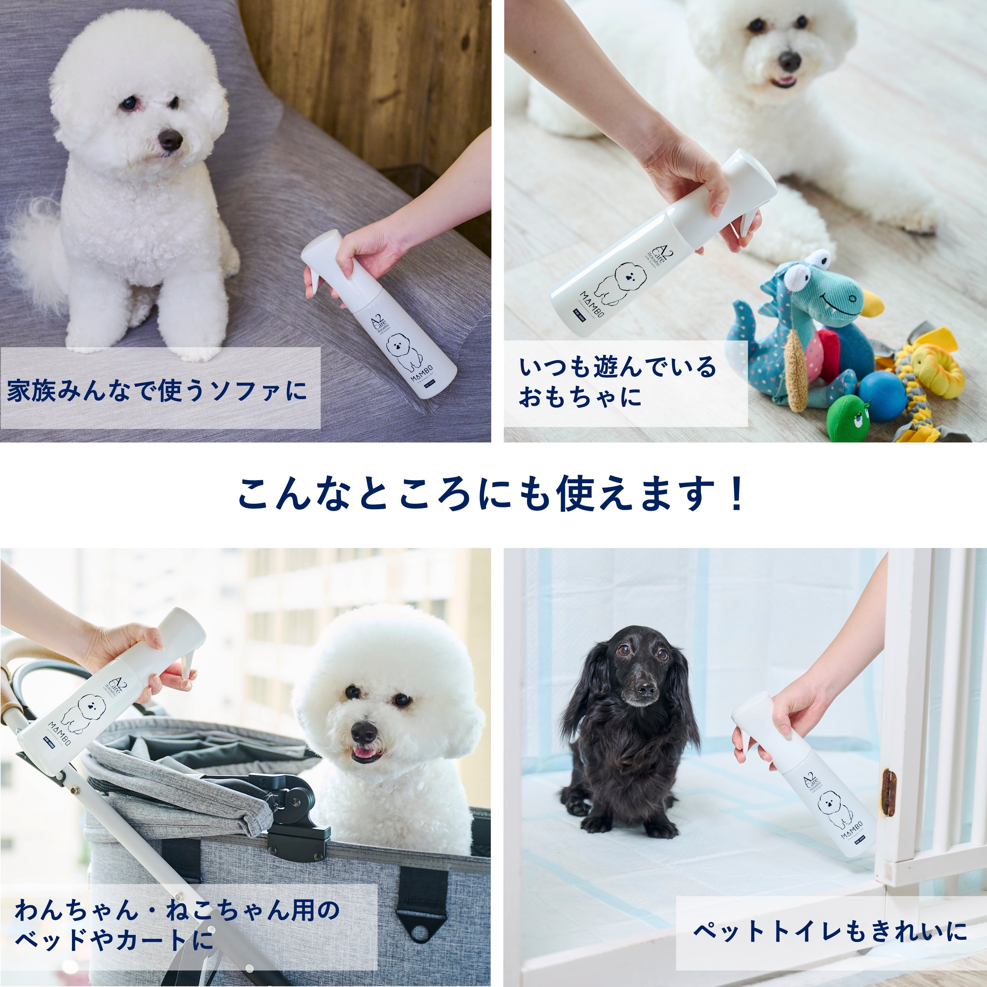 A2Care シリーズから、人気の高いマイクロミストスプレーボトルにかわいい MAMBO のイラストがプリントされたペット用スプレーボトルセットが数量限定で登場。